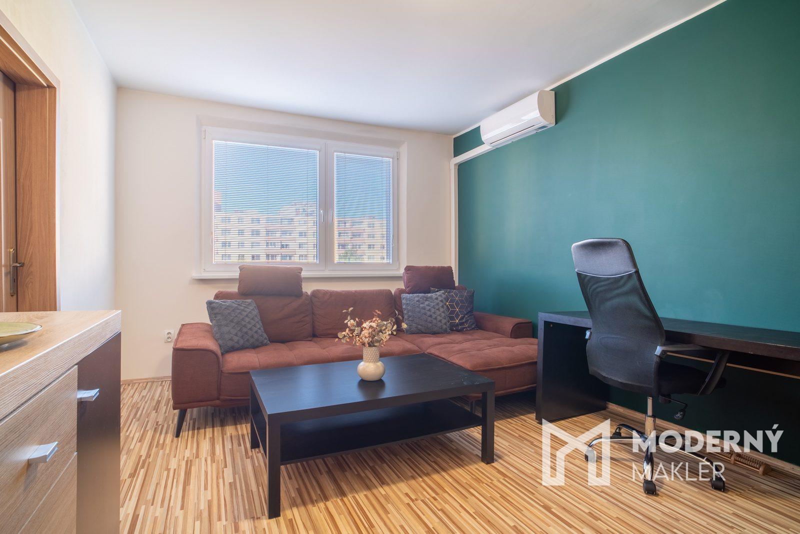 Silnou stránkou tejto ponuky je predovšetkým pokojná lokalita obklopená zeleňou, ktorá zabezpečuje príjemné a komfortné bývanie. Prakticky riešená dispozícia a klimatizácia zvyšujú celkový štandard bývania. Významným benefitom je aj električková zastávka situovaná priamo pred bytovým domom. Byt sa prenajíma kompletne zariadený, pripravený na okamžité nasťahovanie.