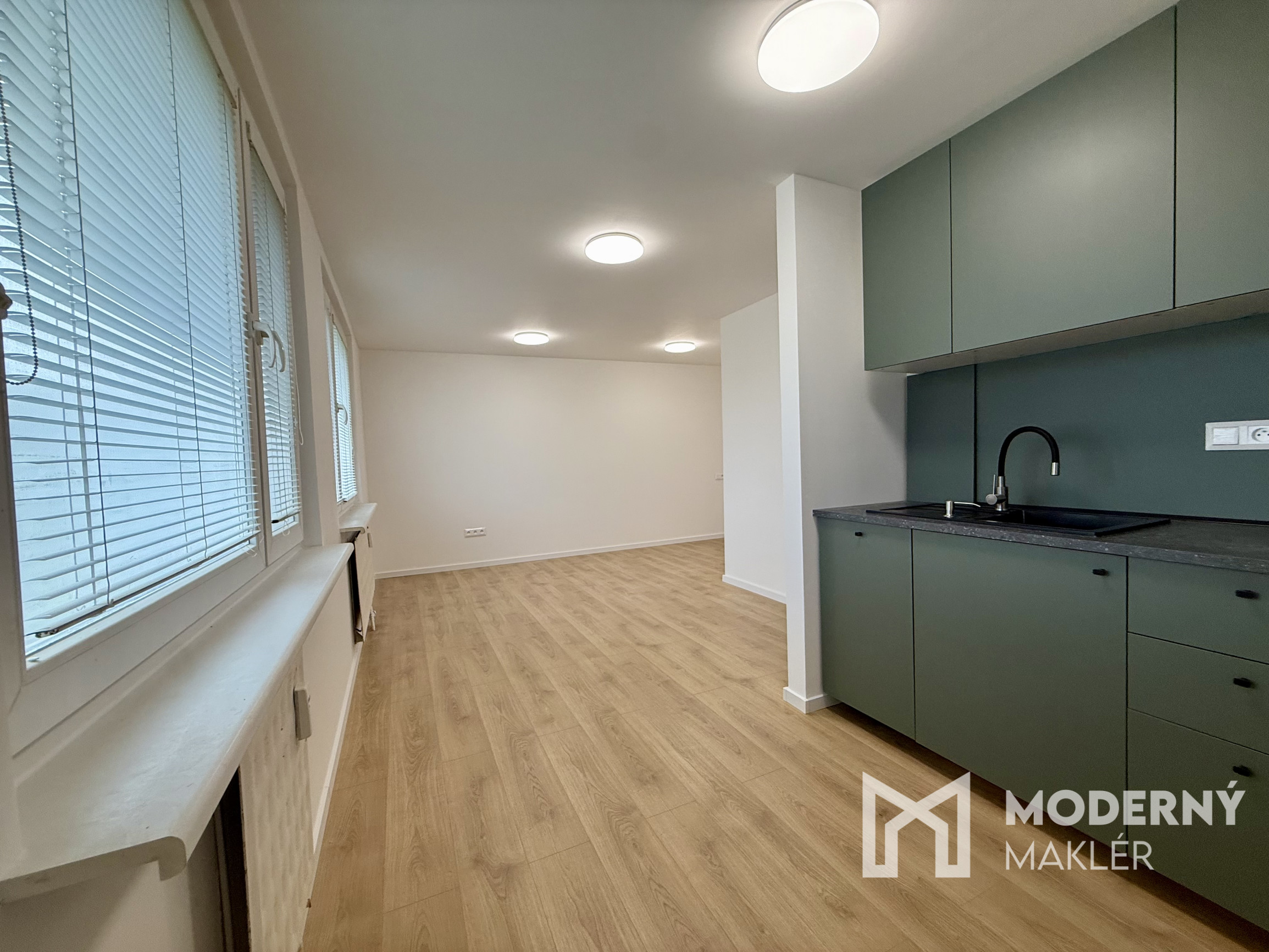 Byt sa nachádza na južnej strane budovy a ponúka optimálne osvetlenie počas celého dňa. Dispozícia bytu je riešená ako 1-izbová, pričom hlavným priestor tvorí obývacia izba, kuchyňa, spací kút a kúpeľňa spojená s toaletou.