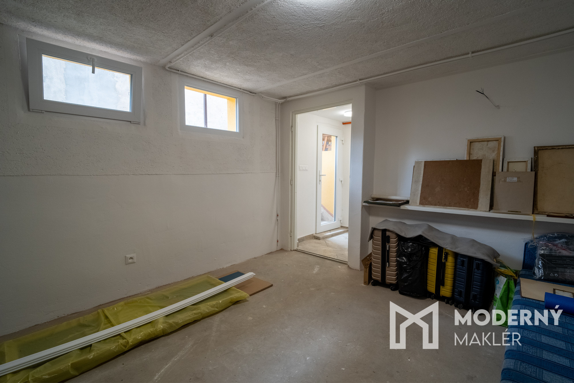 Nehnuteľnosť pozostáva zo vstupnej chodby, ktorá vedie na dvor a zároveň do ďalšej chodby. Z hlavnej chodby sa dostanete do izby, na toaletu a do kuchyne. Z kuchyne máte priamy prístup do ďalšej izby a do kúpeľne. Pivnica so samostatnou kúpeľňou ponúka možnosť dotvorenia podľa vlastných predstáv napríklad na salón, wellness, saunu, posilňovňu, alebo inú obchodnú činnosť.