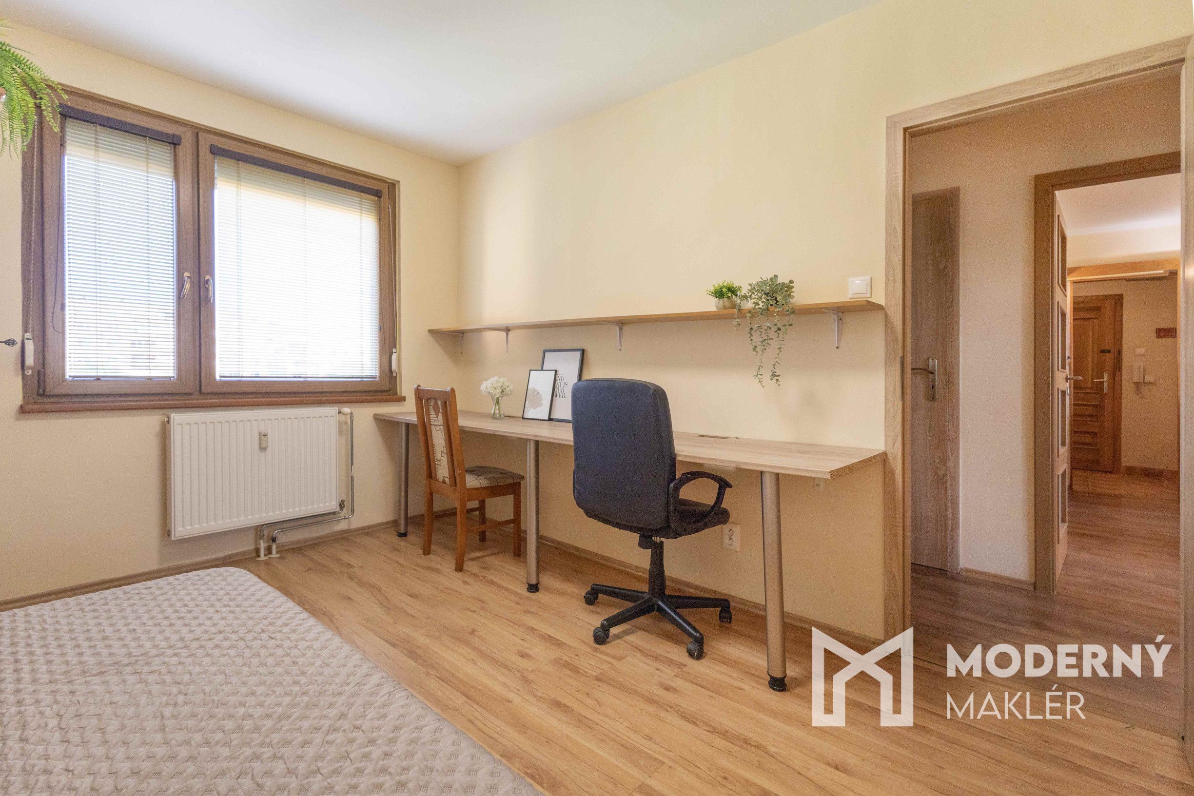 Byt predstavuje veľmi dobrú voľbu pre klienta, ktorý hľadá priestranné, funkčné a okamžite obývateľné bývanie bez nutnosti ďalších investícií. Dispozične je výborne riešený – denná a nočná časť sú prirodzene oddelené, byt je vzdušný a orientovaný na dve svetové strany, čo zabezpečuje dostatok denného svetla počas celého dňa.