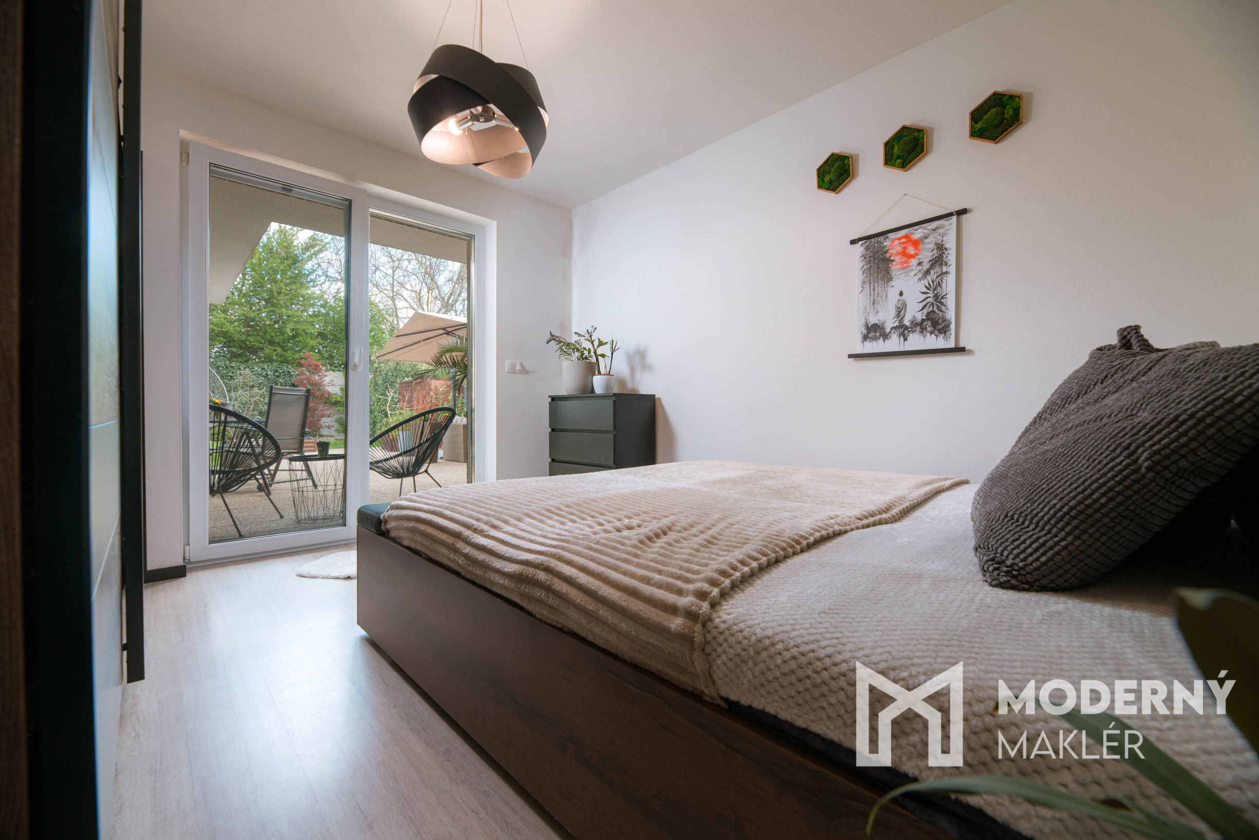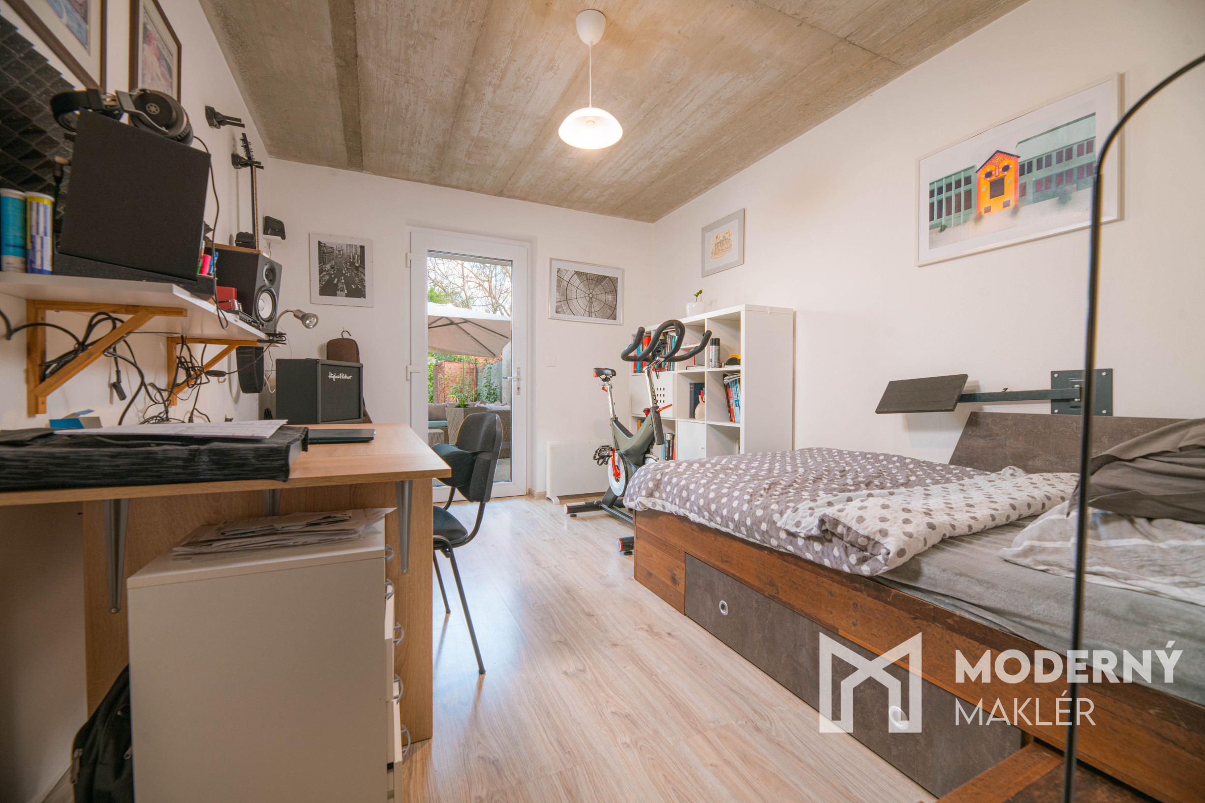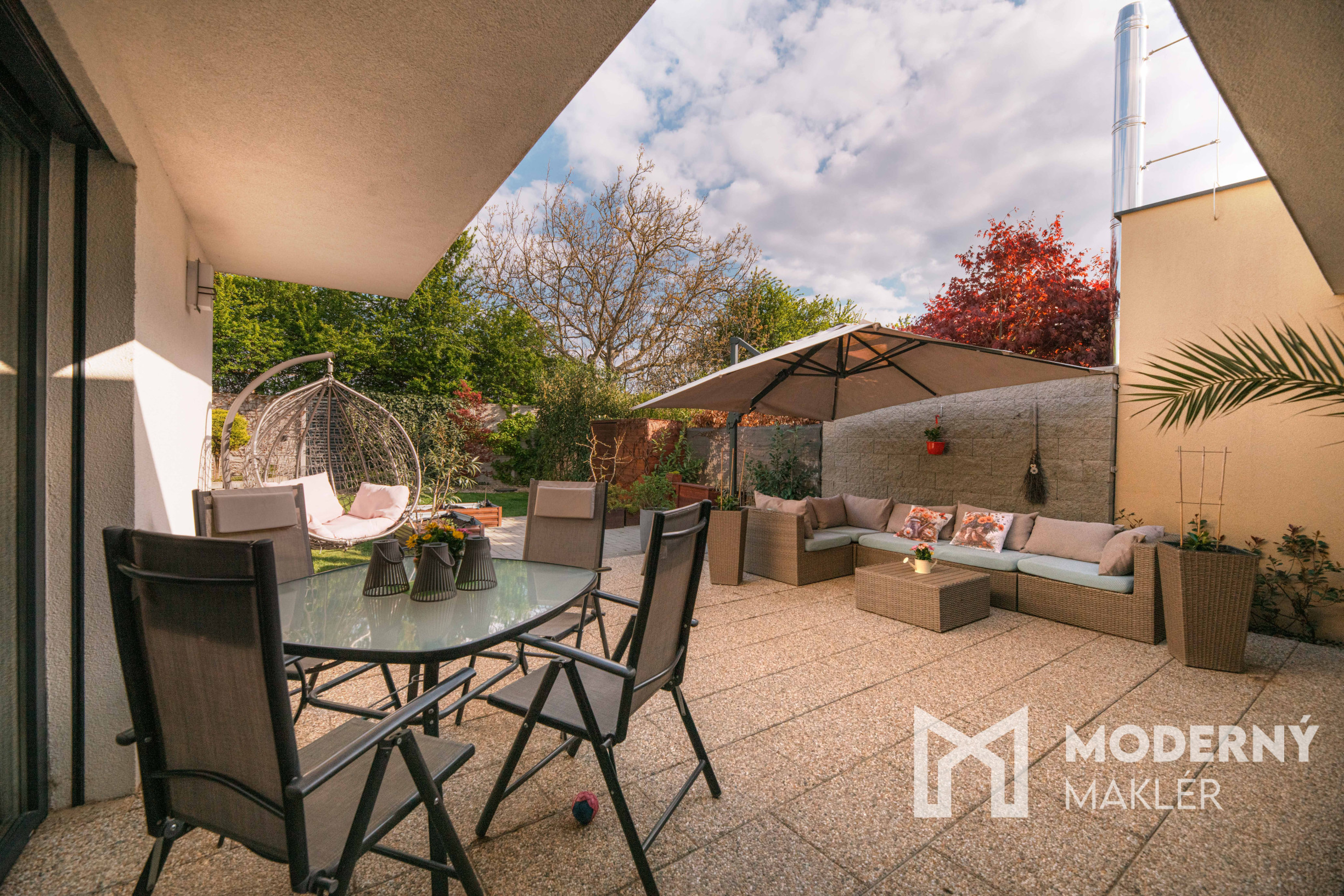 Ponuka sa predáva kompletne zariadená, po dohode je možné niektoré zariadenie vypratať. Rodinný dom pozostáva zo vstupnej chodby oddelenej dverami, ktorá vedie do jednotlivých miestností. Nájdete tu dve detské izby vybavené praktickými skriňami, pohodlnú spálňu a chodbu s rolldoor, ktorá slúži ako vstup do pracovne s priamym výstupom na terasu a vnútorným prístupom do garáže. K dispozícii je kompletne vybavená kúpeľňa s WC, vaňou a sprchovým kútom. Dominantou bytu je priestranná obývacia izba prepojená s kuchyňou a jedálenským stolom, z ktorej je výstup na terasu cez francúzske okná. Na terase sa nachádza pohodlné sedenie, húpacie kreslo a jedálenský stôl so stoličkami, ideálne na relaxáciu a vonkajšie stolovanie. Nehnuteľnosť je orientovaná na juhozápad.