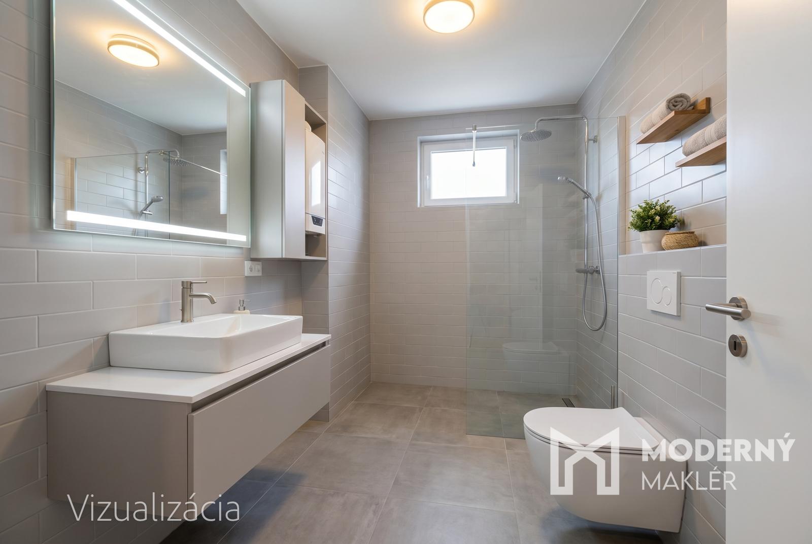 Podkrovie tvorí chodba so schodiskom, kúpeľňa s WC, ďalšia kuchyňa a komora. Tento priestor ponúka flexibilné využitie – ideálny napríklad ako samostatná bytová jednotka alebo komfortná nočná časť podľa potrieb nového majiteľa.