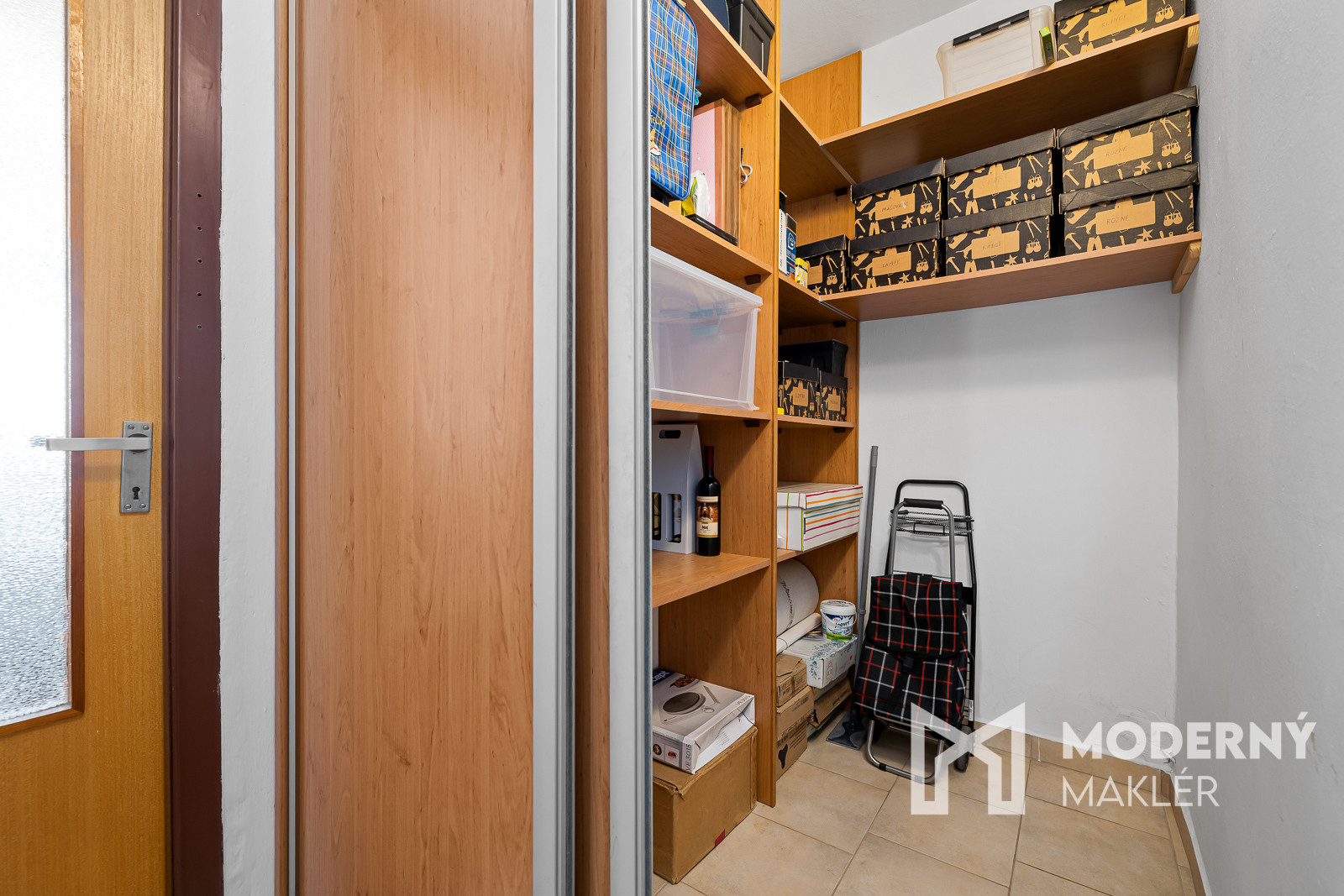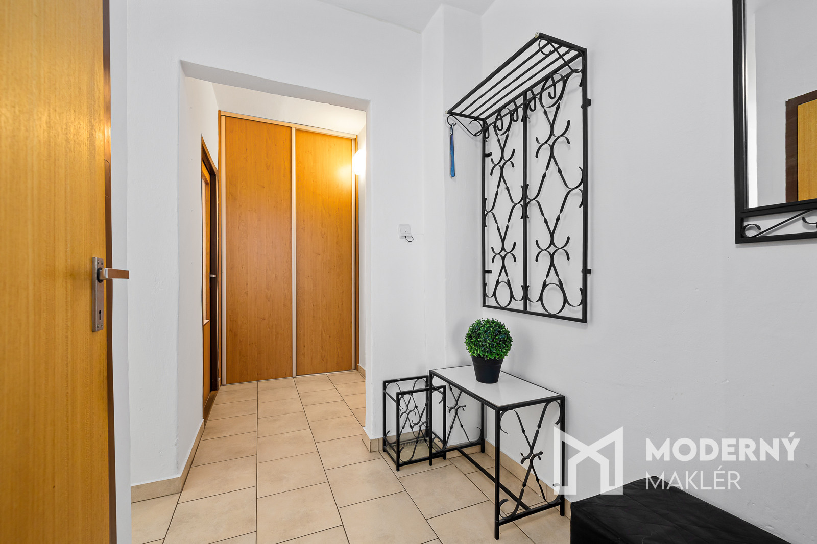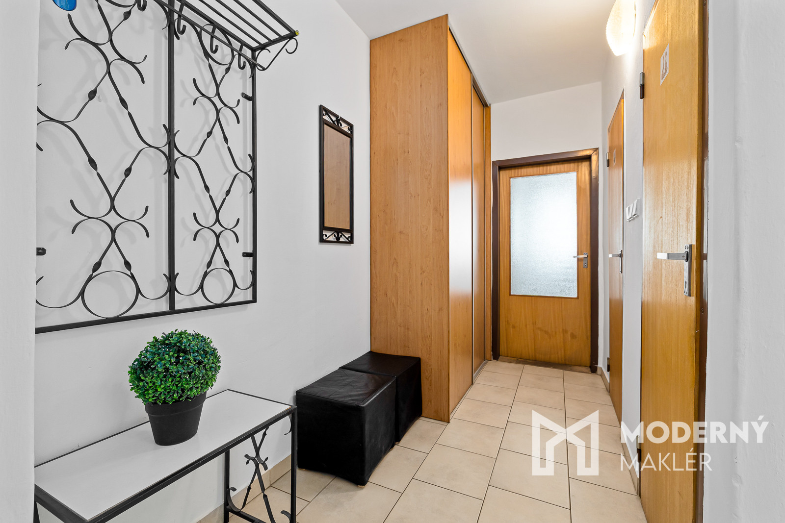 Dispozícia bytu je navrhnutá veľmi prakticky a vzdušne. Hneď pri vstupe vás privíta predsieň s veľkorysým priechodným šatníkom, ktorý ponúka nadštandardný úložný priestor. Z centrálnej haly vedú kroky do svetlej obývacej izby, ktorá je plynulo prepojená s kuchyňou. Z nej máte priamy výstup na východne orientovanú loggiu – ideálne miesto na vychutnanie si rannej kávy. Nočnú časť bytu tvoria dve samostatné, nepriechodné izby vrátane spálne, pričom praktické zázemie dopĺňa kúpeľňa a samostatná toaleta. Celá nehnuteľnosť je orientovaná na východ, vďaka čomu je interiér krásne presvetlený a plný ranného slnka.