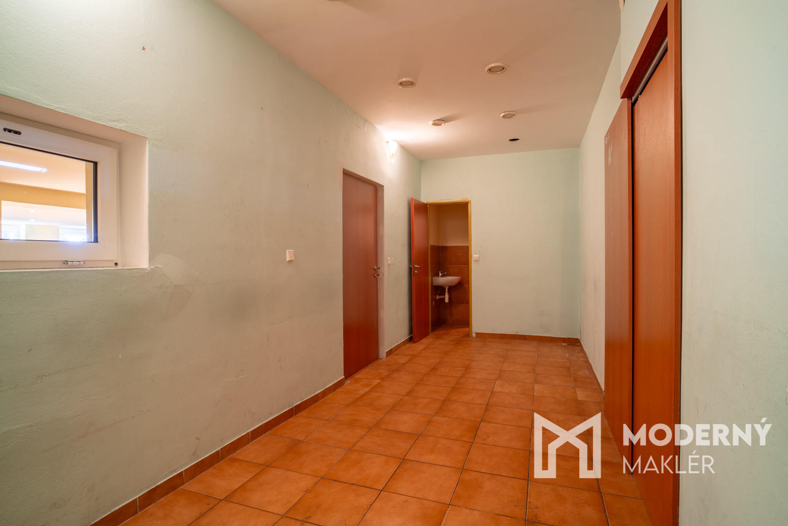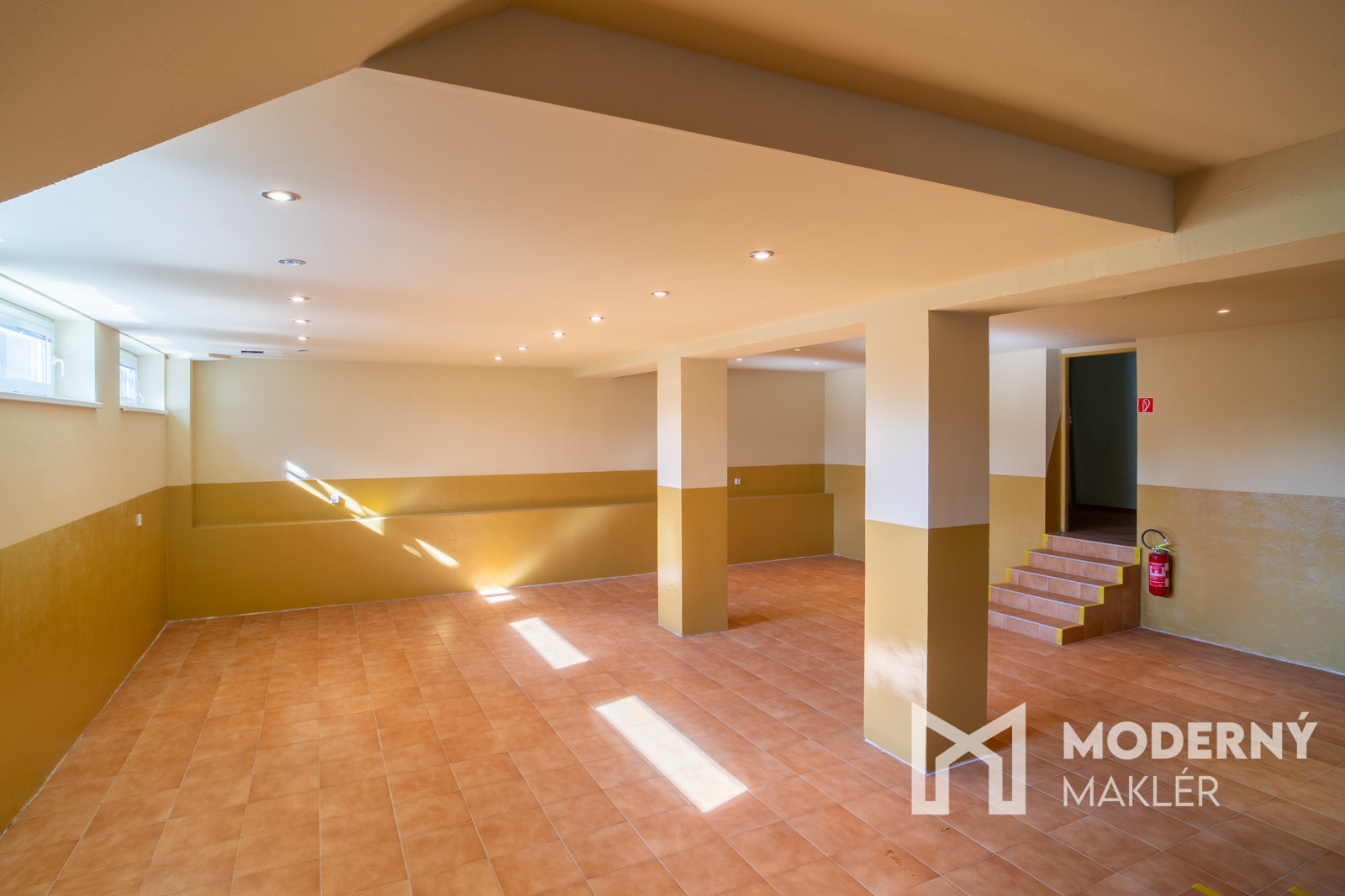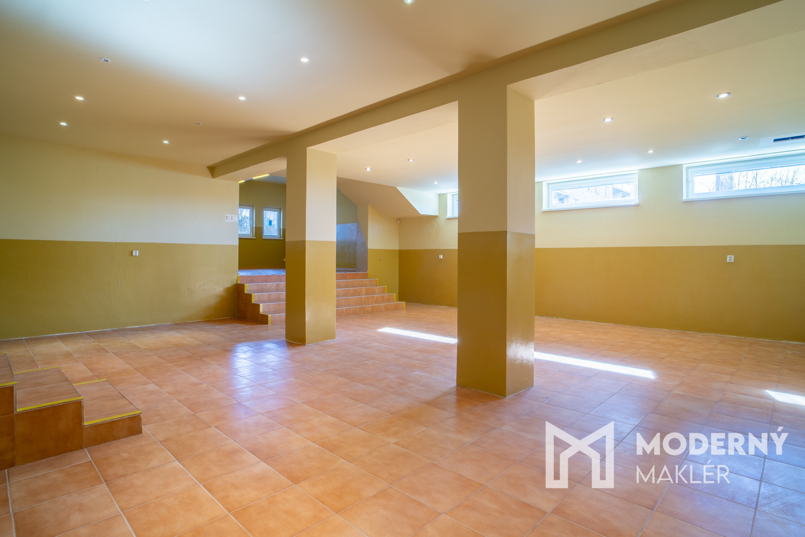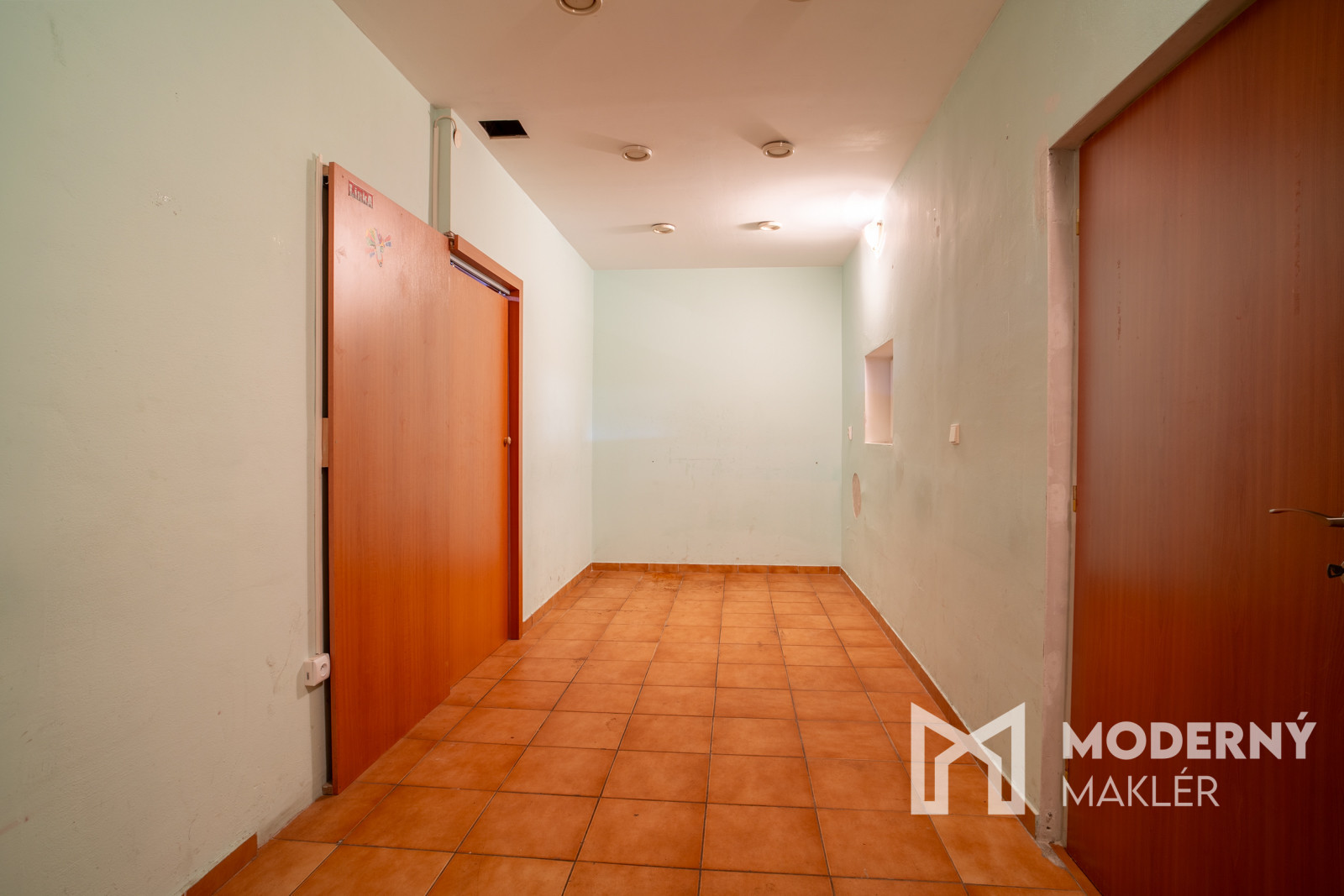 Dom sa predáva v stave pripravenom na individuálne zariadenie podľa predstáv nového majiteľa. Prízemie bolo zrekonštruované podľa potrieb nájomníkov na maximálne využitie potenciálu priestorov a 1. poschodie je kompletne zrekonštruované. Na prízemí sa nachádza vstupná chodba, ktorou prejdete do dvoch rozľahlých miestností vhodných na podnikateľské využitie (napr. prevádzka, kancelárie, obchod, služby a pod.). Na poschodí sa nachádza obytná časť s 5 izbami a veľkorysou terasou. Nehnuteľnosť ponúka možnosť postavenia ďalšieho poschodia. Dom je podpivničený, čo poskytuje dostatok úložného priestoru. K dispozícii je vlastná garáž, pričom na pozemku je možnosť ďalšieho parkovania.