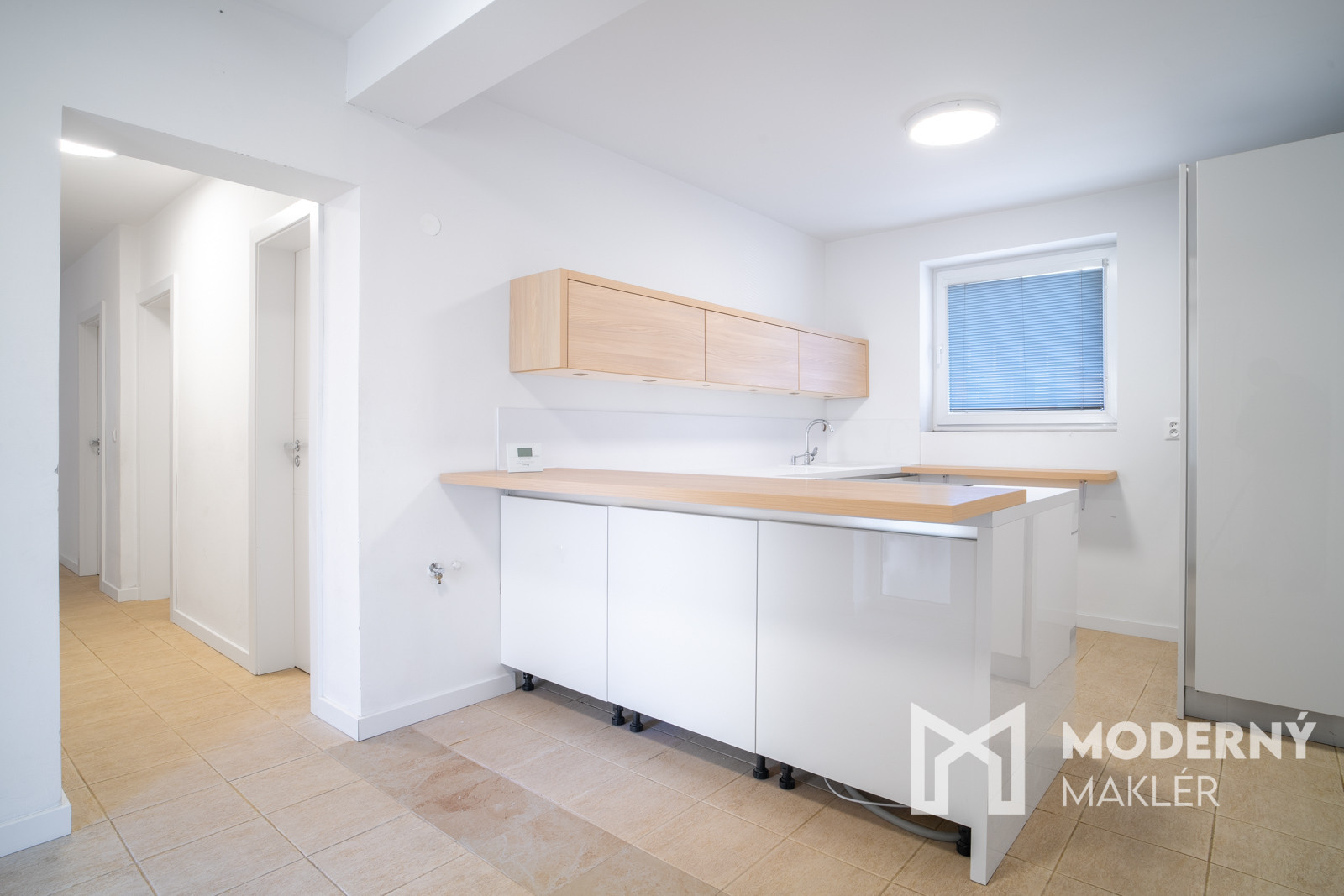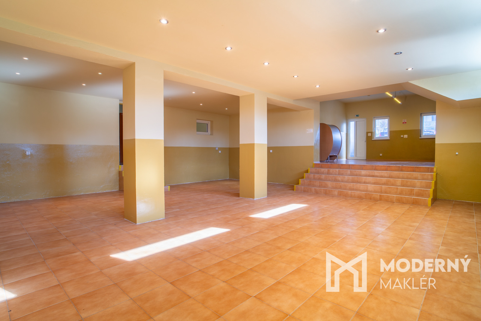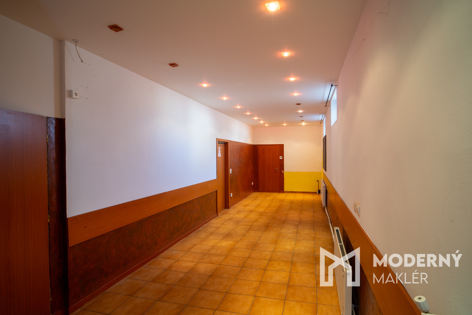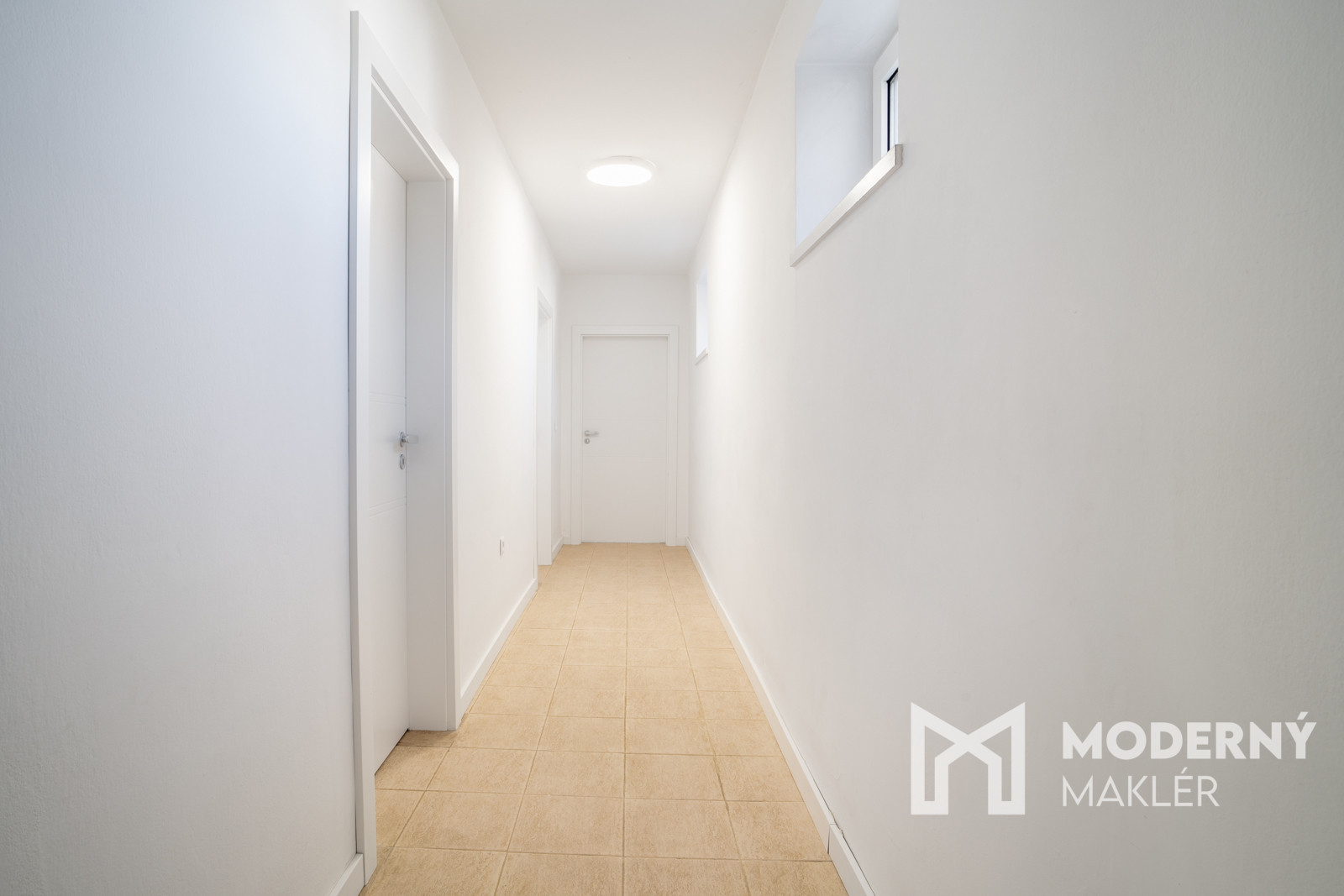 Dom sa predáva v stave pripravenom na individuálne zariadenie podľa predstáv nového majiteľa. Prízemie bolo zrekonštruované podľa potrieb nájomníkov na maximálne využitie potenciálu priestorov a 1. poschodie je kompletne zrekonštruované. Na prízemí sa nachádza vstupná chodba, ktorou prejdete do dvoch rozľahlých miestností vhodných na podnikateľské využitie (napr. prevádzka, kancelárie, obchod, služby a pod.). Na poschodí sa nachádza obytná časť s 5 izbami a veľkorysou terasou. Nehnuteľnosť ponúka možnosť postavenia ďalšieho poschodia. Dom je podpivničený, čo poskytuje dostatok úložného priestoru. K dispozícii je vlastná garáž, pričom na pozemku je možnosť ďalšieho parkovania.